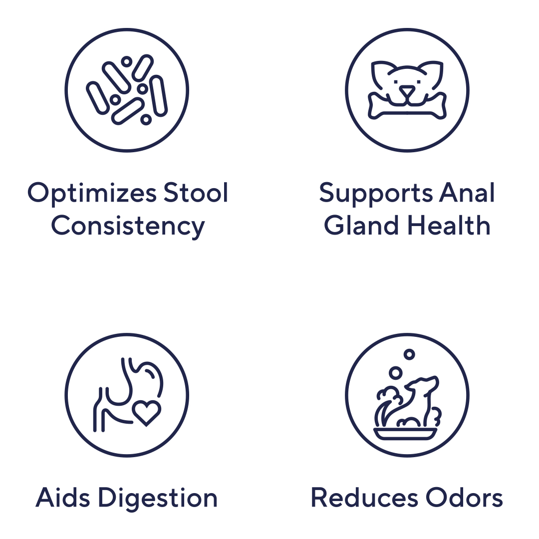Fiber helps to keep their stools firm, naturally helping them empty their anal glands appropriately and regularly while pooing under control on walks.
